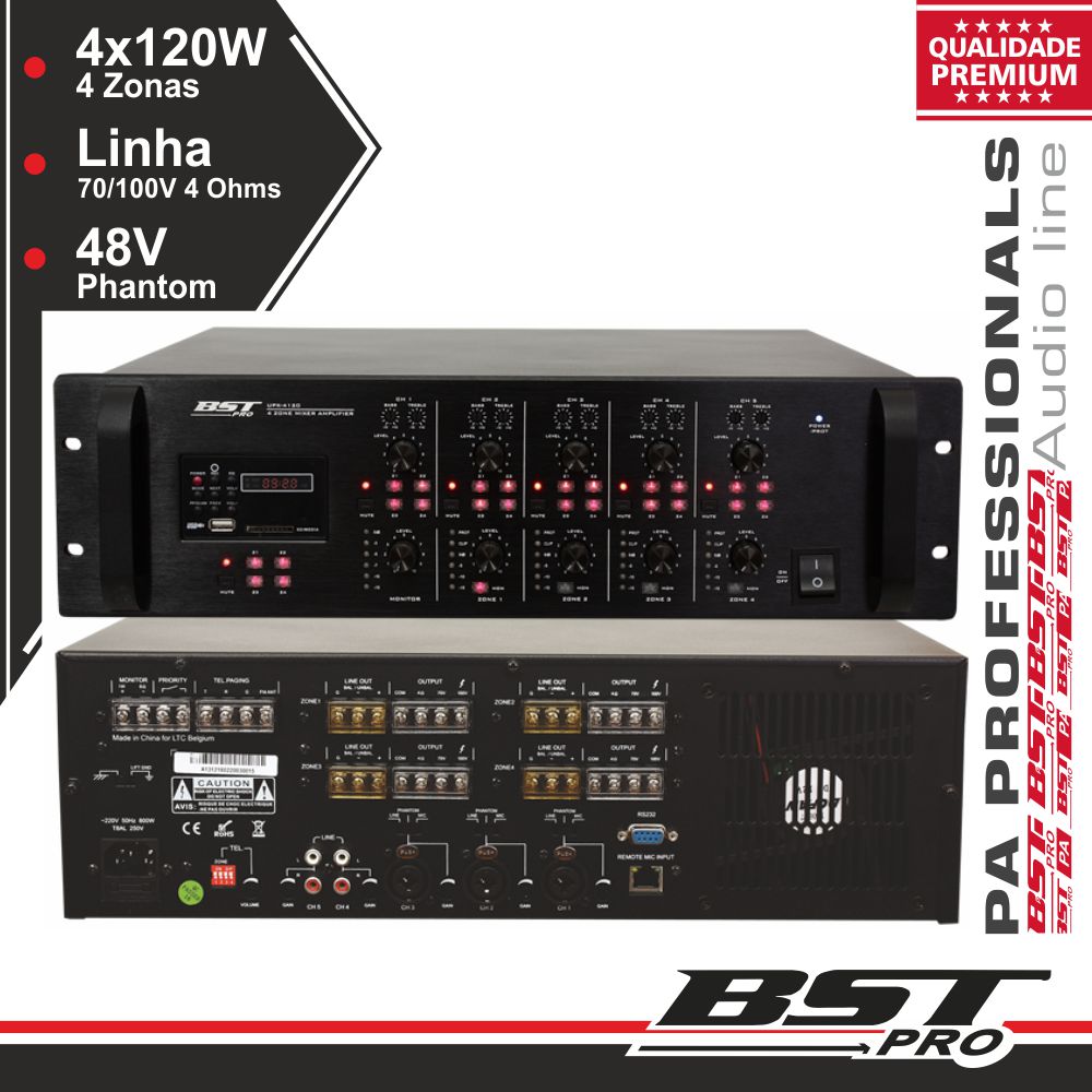Home AMPLIFICAD AMPLIFICADOR 19" 4 ZONAS PA 100V 5 CANAIS 4X120W MP3 USBS AMPLIFICADOR 19" 4 ZONAS PA 100V 5 CANAIS 4X120W MP3 USBS SKU: UPX4120 1.059,20 € Desconto de %. IVA incluído. O produto encontra-se sem stock. Adicionar à wishlist - Amplificador 19" 4 Zonas MATRIX, 220-240Vac - Saída p/ colunas: 4 Ohm / 70V / 100V, 5 canais - Leitor multimédia USB e SD até 32Gb FAT16/32 - Potência: 4x120W + 1W monitor, 80.000-16kHz - Painel Alumínio escovado, alimentação Phantom Marca BSTPRO Tags ÁUDIO PROFISSIONAL EQUIPAMENTOS PARA INSTALAÇÕE Características Partilhar
