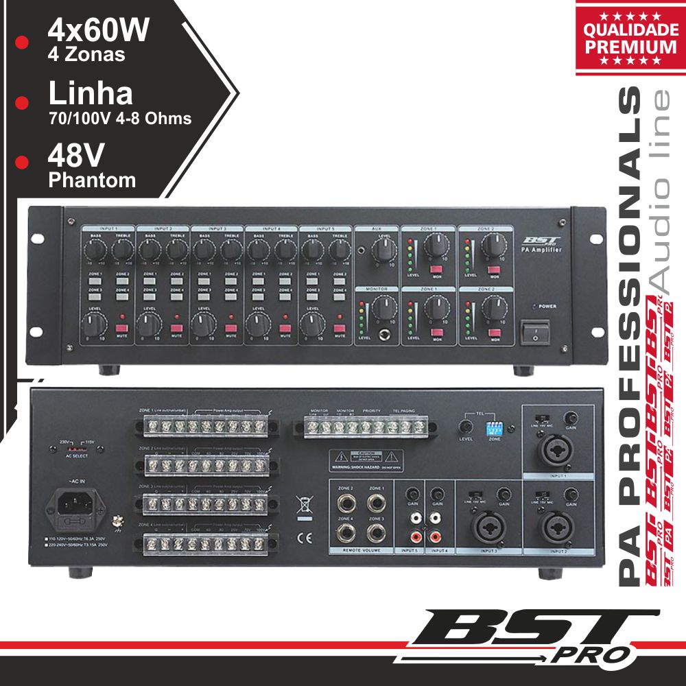 Home AMPLIFICAD AMPLIFICADOR 19" 4 ZONAS PA 100V 5 CANAIS 4X60W MP3 USBSD AMPLIFICADOR 19" 4 ZONAS PA 100V 5 CANAIS 4X60W MP3 USBSD SKU: UPX460 550,80 € Desconto de %. IVA incluído. O produto encontra-se sem stock. Adicionar à wishlist - Amplificador 19" 4 Zonas MATRIX, 220-240Vac - Saída p/ colunas: 4 Ohm / 70V / 100V, 5 canais - Leitor multimédia USB e SD até 32Gb FAT16/32 - Potência: 4x60W + 1W monitor, 50.000-18kHz - Painel Alumínio escovado, alimentação Phantom Marca BSTPRO Tags ÁUDIO PROFISSIONAL EQUIPAMENTOS PARA INSTALAÇÕE Características Partilhar