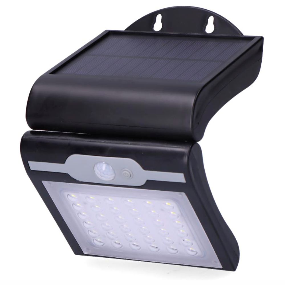 - Aplique LED c/ painel solar e sensor IP44 - Luz frontal c/ 36 LED e luz presença posterior - Equipado c/ detetor crepuscular e movimento - Tempo carga: 4-6h / Tempo trabalho: 6 a 8h - Área Iluminação: 20m2 - Inclui: 2 parafusos, 2 buchas e esquema instalação