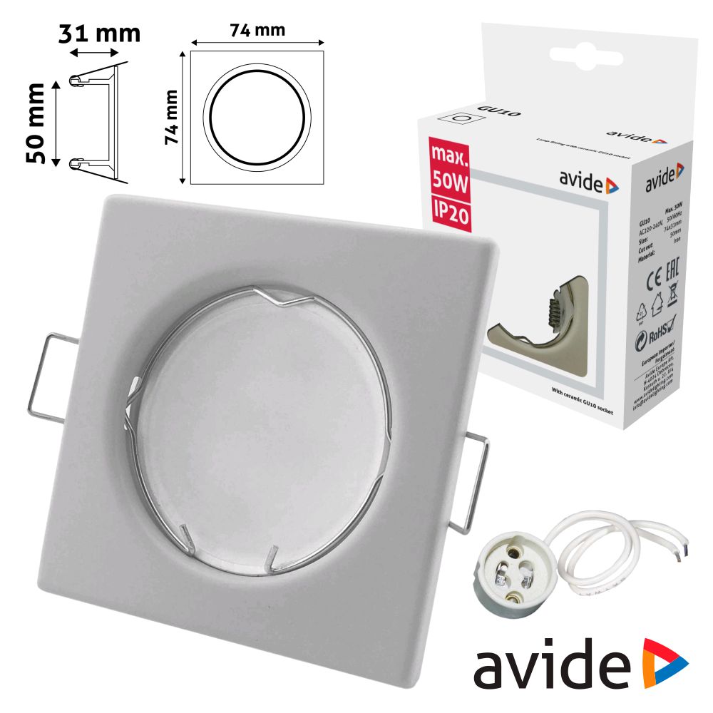 Home AROS ARO QUADRADO FIXO BRANCO P MR16-GU10 AVIDE ARO QUADRADO FIXO BRANCO P MR16-GU10 AVIDE SKU: ABGU10F-S-W 1,10 € Desconto de %. IVA incluído. Comprar Contactar Adicionar à wishlist - Aro quadrado p/ montar lâmpadas no tecto - Estrutura robusta em liga de Zinco branco - Adequado p/ lâmpadas GU10 e MR16 - Fixação c/ molas laterais, IP20 - Medida: 74x74mm, furo: Ø50mm - Inclui casquilho GU10, capacidade: até 50W Marca AVIDE Tags ILUMINAÇÃO ACESSÓRIOS ILUMINAÇÃO AROS Características Partilhar