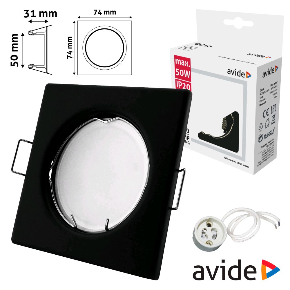 Home AROS ARO QUADRADO FIXO PRETO P MR16-GU10 AVIDE ARO QUADRADO FIXO PRETO P MR16-GU10 AVIDE SKU: ABGU10F-S-B 1,00 € Desconto de %. IVA incluído. O produto encontra-se sem stock. Adicionar à wishlist - Aro quadrado p/ montar lâmpadas no tecto - Estrutura robusta em liga de Zinco preto - Adequado p/ lâmpadas GU10 e MR16 - Fixação c/ molas laterais, IP20 - Medida: 74x74mm, furo: Ø50mm - Inclui casquilho GU10, capacidade: até 50W Marca AVIDE Tags ILUMINAÇÃO ACESSÓRIOS ILUMINAÇÃO AROS Características Partilhar
