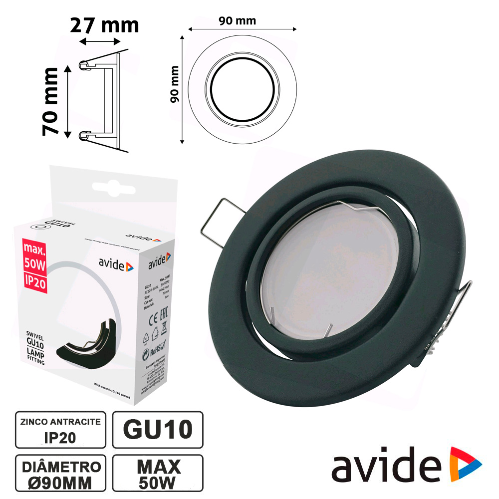 Home AROS ARO REDONDO AJUSTÁVEL ANTRACITE P MR16-GU10 AVIDE ARO REDONDO AJUSTÁVEL ANTRACITE P MR16-GU10 AVIDE SKU: ABGU10F-NS-AN 1,20 € Desconto de %. IVA incluído. O produto encontra-se sem stock. Adicionar à wishlist - Aro redondo p/ montar lâmpadas no tecto - Estrutura robusta em liga de Zinco antracite - Adequado p/ lâmpadas GU10 e MR16 - Fixação c/ molas laterais, IP20, ajustável - Diâmetro: Ø90cm, furo: Ø70mm - Inclui casquilho GU10, capacidade: até 50W Marca AVIDE Tags ILUMINAÇÃO ACESSÓRIOS ILUMINAÇÃO AROS Características Partilhar