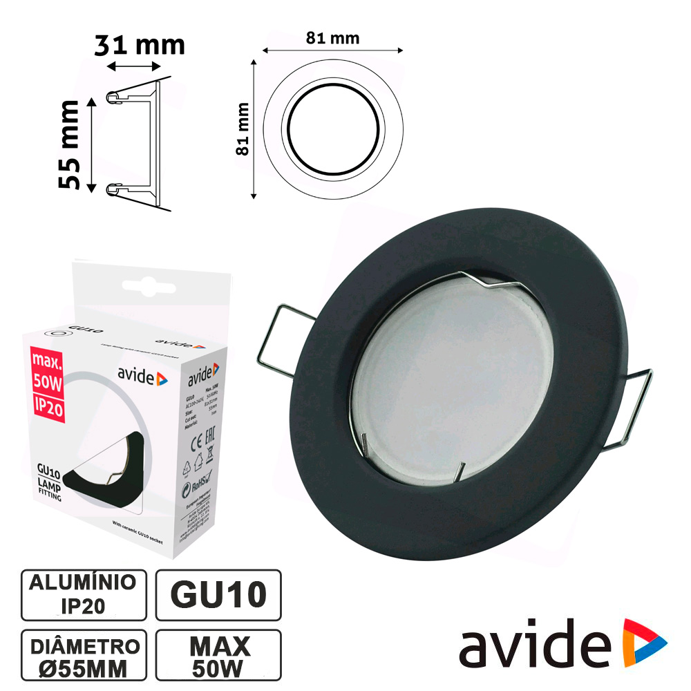 Home AROS ARO REDONDO FIXO ANTRACITE P MR16-GU10 AVIDE ARO REDONDO FIXO ANTRACITE P MR16-GU10 AVIDE SKU: ABGU10F-N-AN 1,30 € Desconto de %. IVA incluído. O produto encontra-se sem stock. Adicionar à wishlist - Aro redondo p/ montar lâmpadas no tecto - Estrutura robusta em liga de Zinco antracite - Adequado p/ lâmpadas GU10 e MR16 - Fixação c/ molas laterais, IP20 - Diâmetro: Ø81cm, furo: Ø55mm - Inclui casquilho GU10, capacidade: até 50W Marca AVIDE Tags ILUMINAÇÃO ACESSÓRIOS ILUMINAÇÃO AROS Características Partilhar