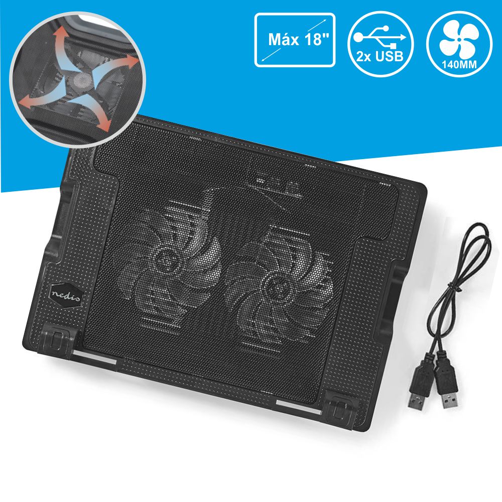 - Base de refrigeração p/ Portátil - Adequado p/ portáteis até 18" - Ventoinhas 2x 140mm ultra silenciosas - Alimentação via USB - Base com ângulo ajustável - 1x USB integrado