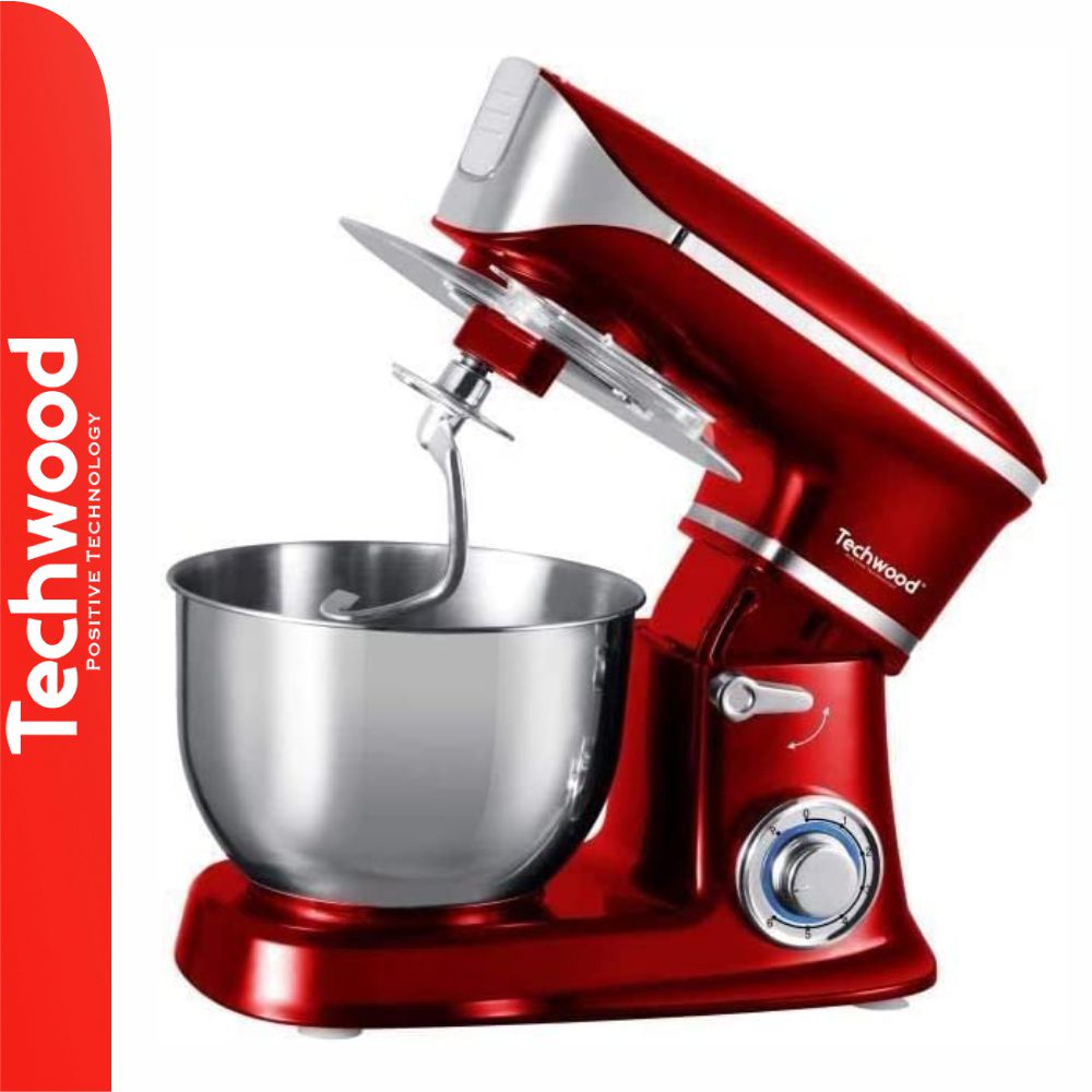 Batedeira Elétrica 1300W C Taça Inox 6.5L Vermelho TECHWOOD