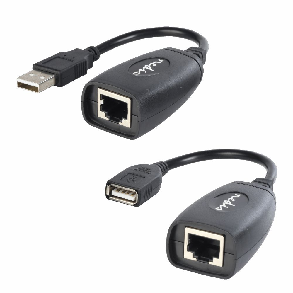 - Cabo adaptador extensor USB 1.1 / RJ45 - Este extensor transfere o sinal USB por RJ45 - Alcance de transmissão até 50 Metros - Fichas: RJ45 Fêmea, USB Macho e USB Fêmea - Utiliza os cabos de rede Cat5E/Cat6 - Funcionamento sem alimentação adicional