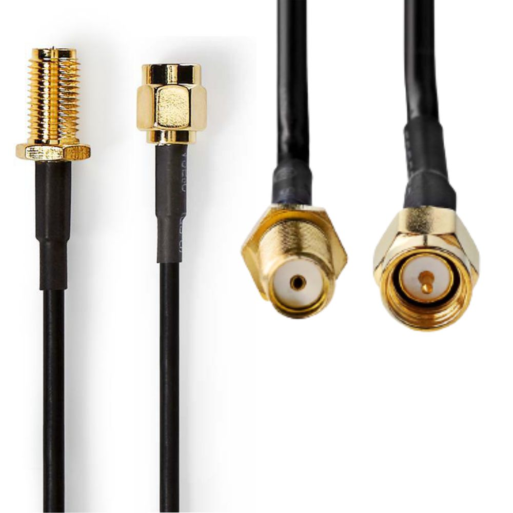 - Cabo de Antena, Cor: Preto - Comprimento do cabo: 5m - Conexão: SMA Macho-SMA Fêmea - Impedância: 50 Ohm, Diâmetro: 2.8 mm - Material exterior: PVC - Conexões Douradas
