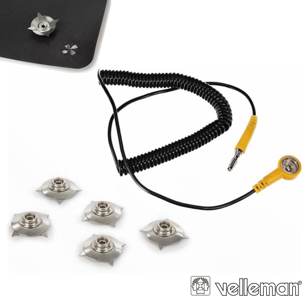 - Cabo d eligação à terra - Inclui conjunto de 5 ilhós - Proteção descarga electrostática ESD - Comprimento total: 1.8 Metros - Diâmetro do cabo: Ø1.8mm