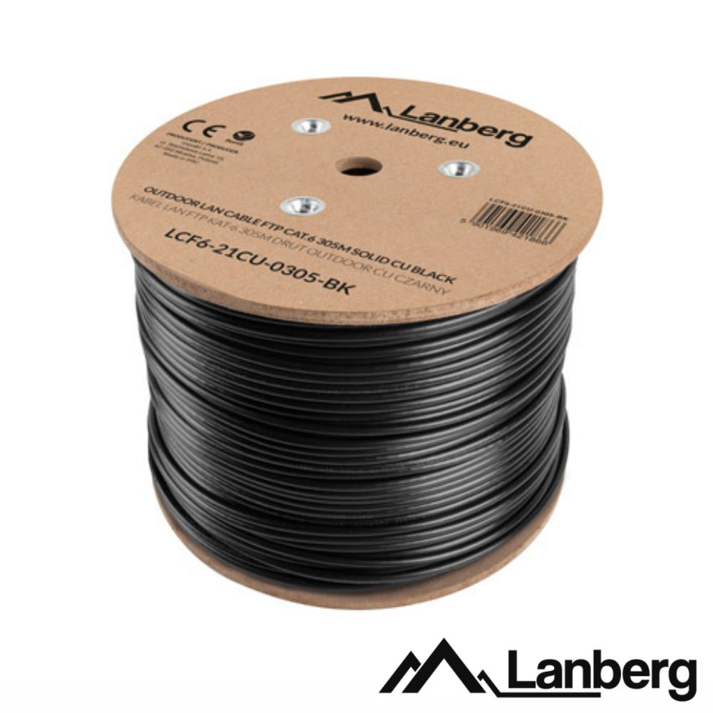 Cabo FTP CAT6 4xAWG23 Rígido CU 305m Preto Exterior LANBERG