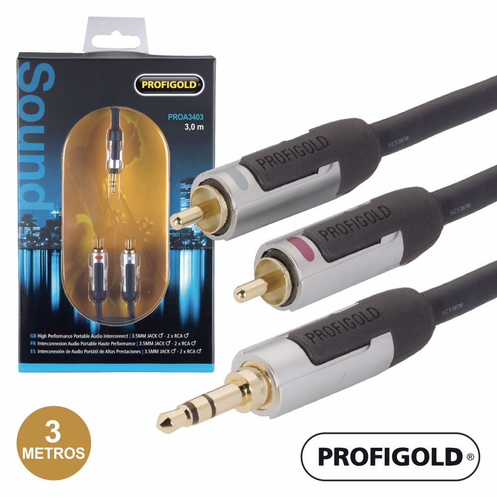 CABO JACK 3.5MM MACHO ST 2-RCA MACHO 3M PROFIGOLD