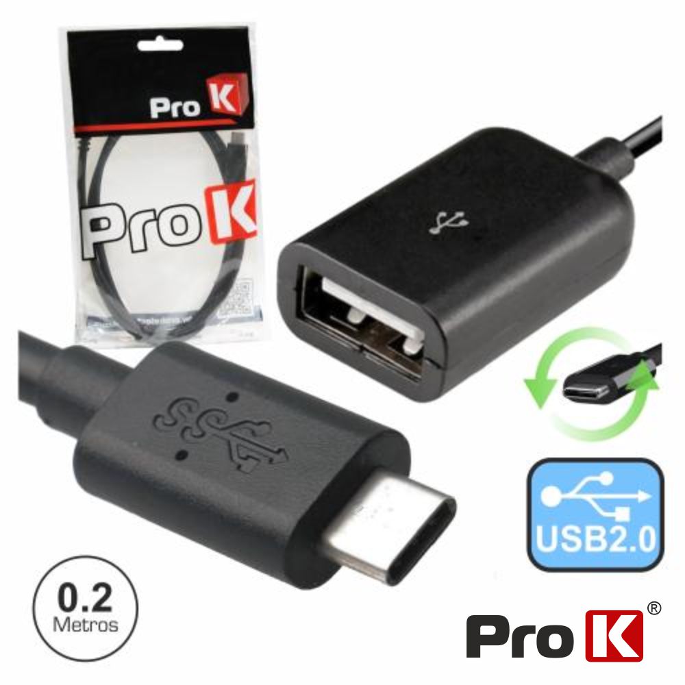 CABO USB-C 2.0 MACHO USB-A FÊMEA 0.2M PROK