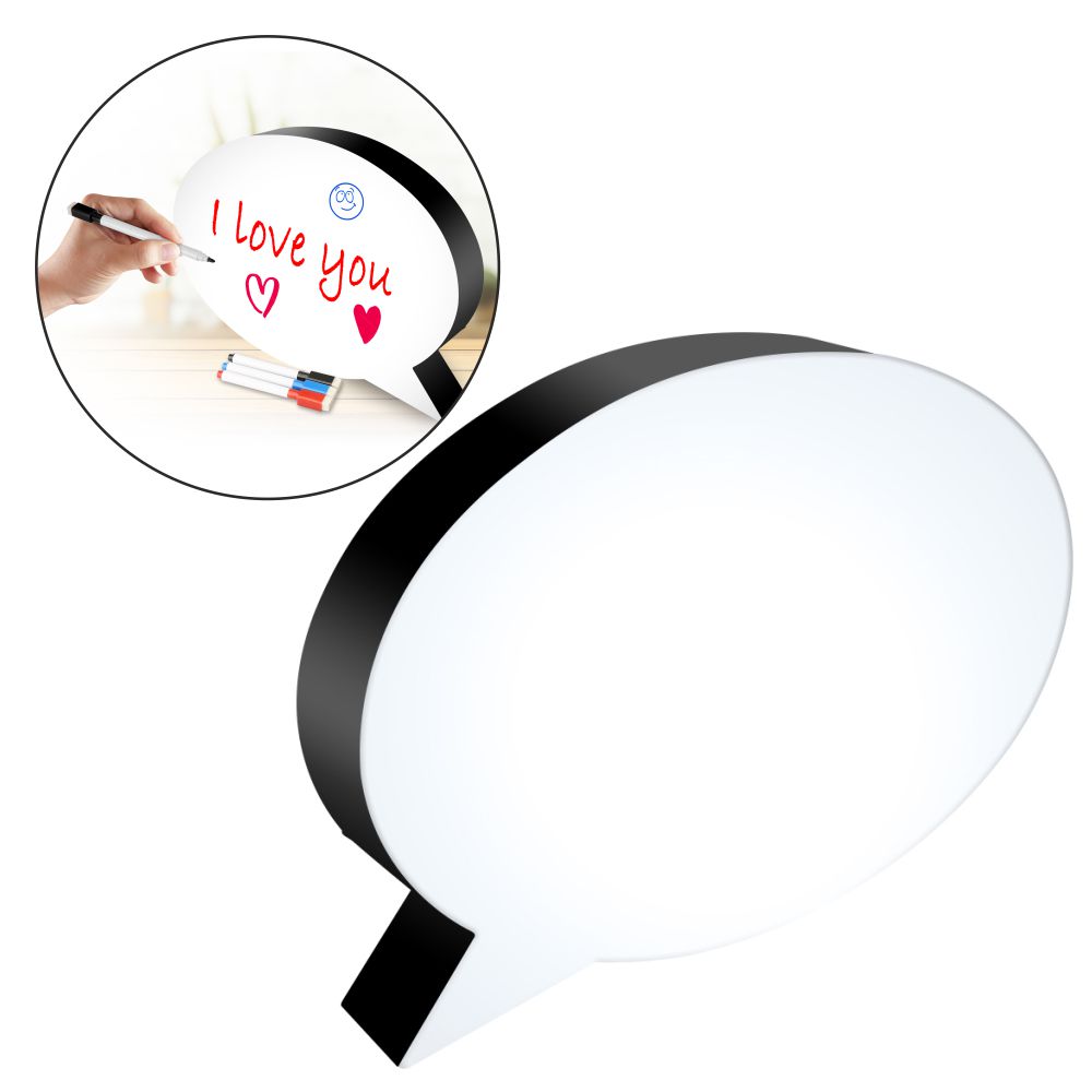 - Pode ser usado como luz de presença - 3 marcadores de cores diferentes incluídos - Escreva e desenhe o que quiser - Fácil de limpar - Interruptor ON/OFF - Alimentação: 3 pilhas AAA (não incluídas)
