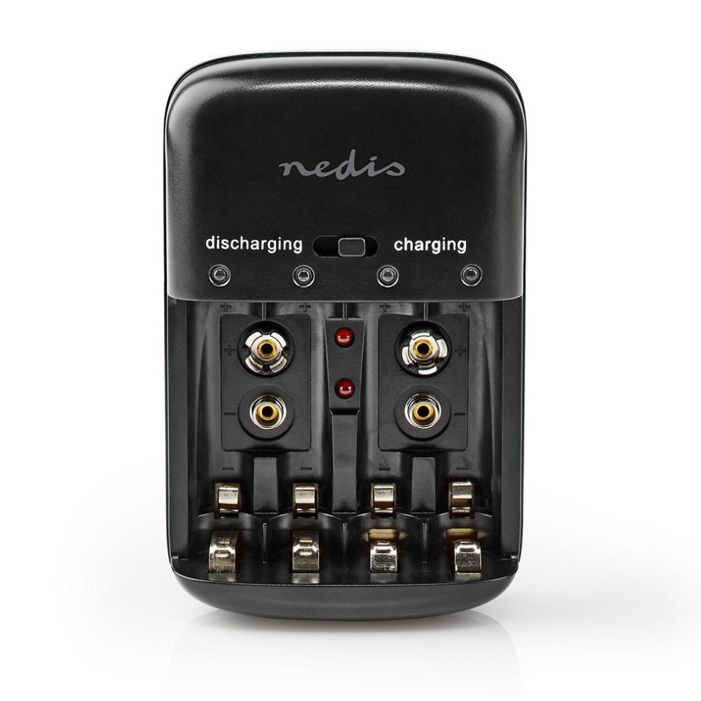 - Carrega e descarrega baterias - Adequado p/ baterias AA/AAA/9V - Estrutura em Plástico Preta - LED acende durante a carga - Tensão funcionamento: 230VAC