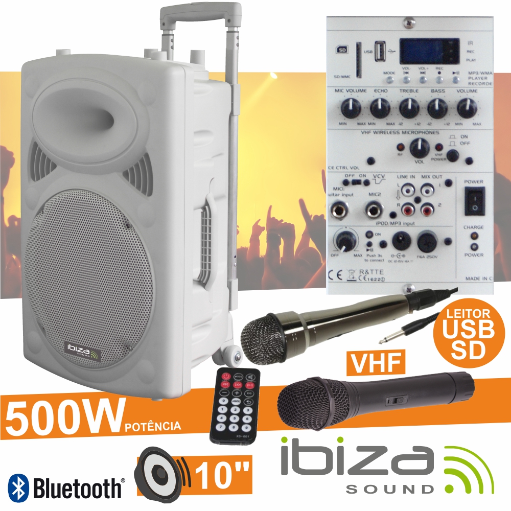 Home COLUNAS PA PORTÁTEIS COLUNA AMPLIFICADA 10" 500W USBBTSDBAT VHF BRANCO IBIZA COLUNA AMPLIFICADA 10" 500W USBBTSDBAT VHF BRANCO IBIZA SKU: PORT10VHF-BT-WH 225,50 € Desconto de %. IVA incluído. O produto encontra-se sem stock. Adicionar à wishlist - Coluna Amplificada 10" 250Wrms/500Wmáx - Leitor Multimédia USB / SD / REC e Bluetooth - 2 Microfones VHF mão (1 s/fios), c/ comando IR - Regulação Bass / Treble, equipado c/ Bluetooth - Coluna Troley c/ rodas, estrutura ABS Branca - Funcionamento 230Vac/12Vdc c/ Bateria interna Marca ibiza Tags ÁUDIO PROFISSIONAL COLUNAS COLUNAS PA PORTÁTEIS Características Partilhar