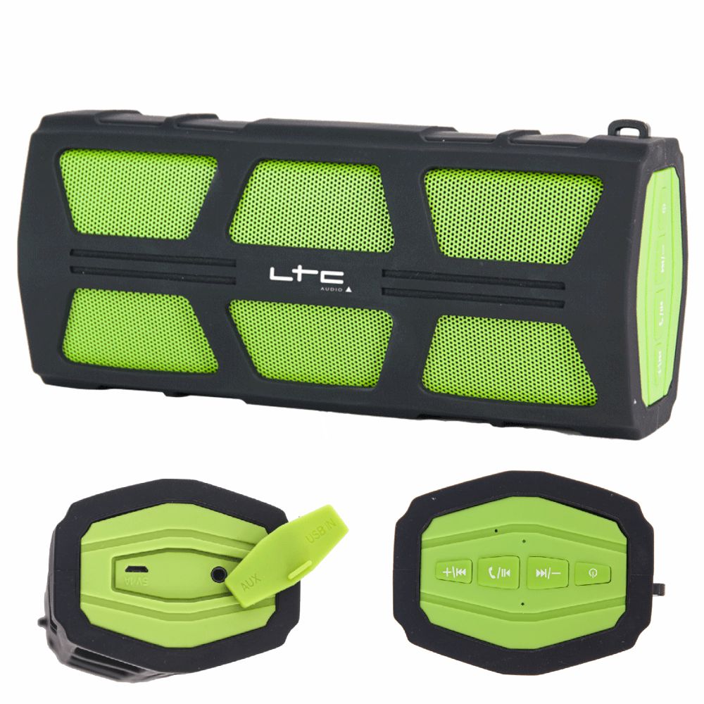 - Coluna Bluetooth Portátil Preto/Verde - Microfone incorporado - Potência: 10W, Entrada AUX via Jack 3.5mm - Frequência: 100Hz-20.000kHz - Bateria: 2600mAh 5V - Dimensões: 177 x 78 x 62mm