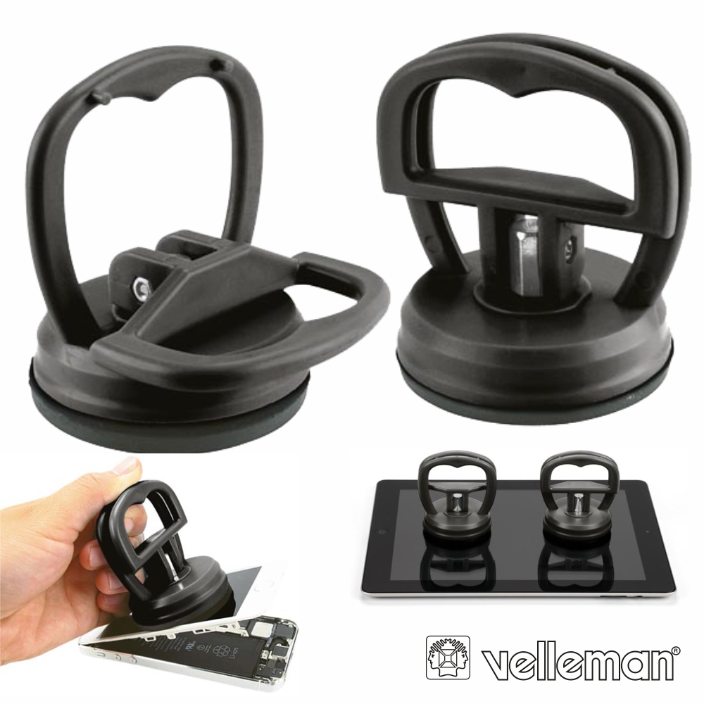- Conjunto de 2 ventosas c/ patilha segurança - Superfície delicada p/ evitar riscos - Adequado p/ remover visores em segurança - Suporte em borracha que garante sucção forte - Ideal p/ visores dos Smatphones e Tablets