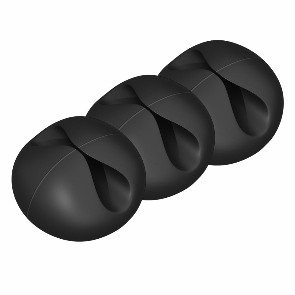 - Conjunto de 3 organizadores de cabos - Flexível e resistente aos danos dos plásticos - Pode ser fixado em paredes, mesas, etc. - Composto por 3 unidades - Adequado para 1 cabo (cada)