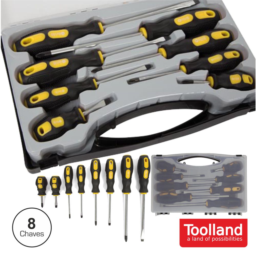 CONJUNTO DE 8 CHAVES FENDAS E PHILIPS TOOLLAND