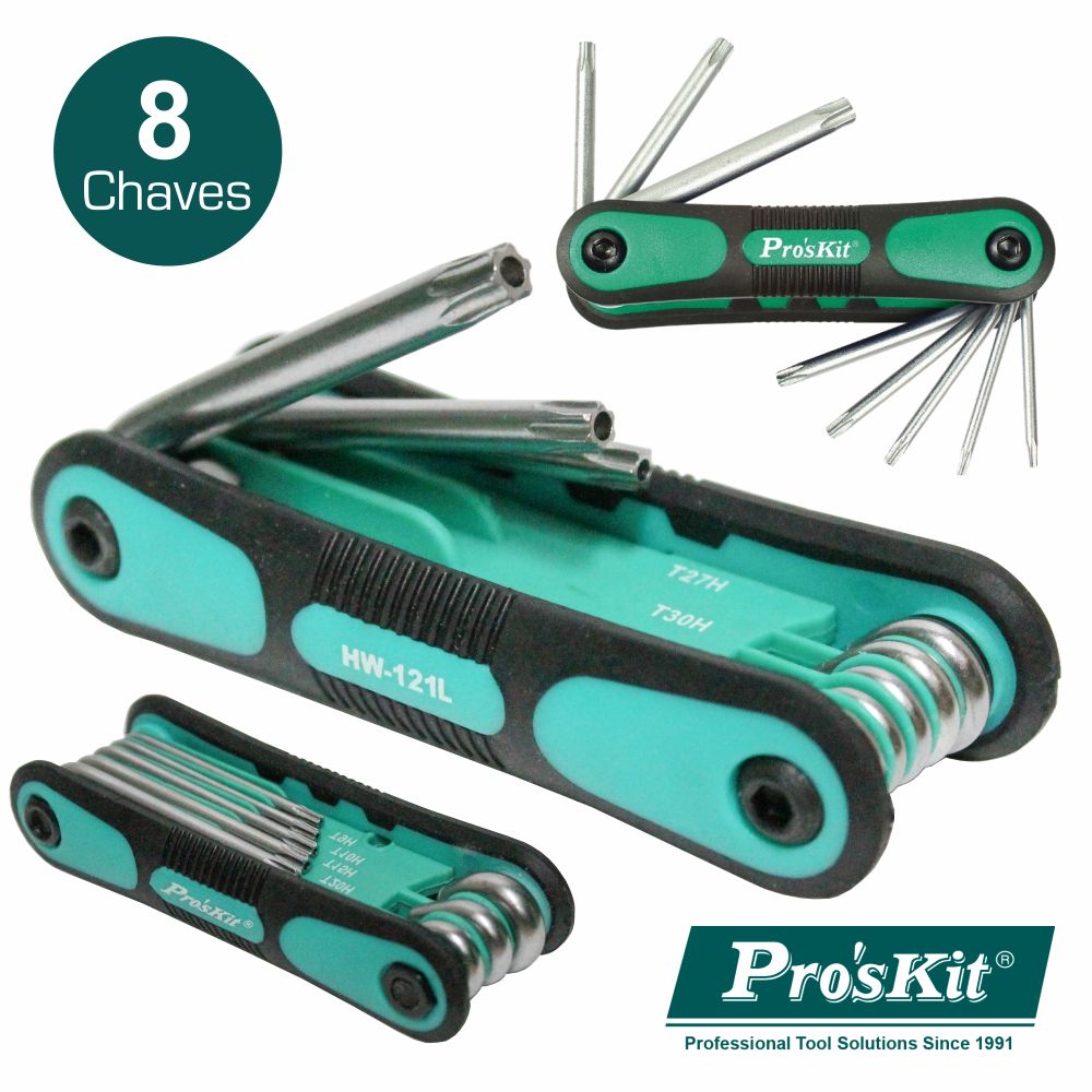 Home CONJUNTOS DE TORX CONJUNTO DE 8 CHAVES TORX C FURO PROSKIT CONJUNTO DE 8 CHAVES TORX C FURO PROSKIT SKU: HW-121L 8,70 € Desconto de %. IVA incluído. Comprar Contactar Adicionar à wishlist - Conjunto de 8 chaves TORX c/ furo - Estrutura em TPR anti derrapante - Lâminas em Aço cromado SAE6150 - Lâminas c/ acabamento acetinado - Medidas: T9H, T10H, T15H, T20H, T25H, T27H, T30H e T40H Marca PROSKIT Tags FERRAMENTAS CHAVES E BITS CONJUNTOS DE TORX Partilhar