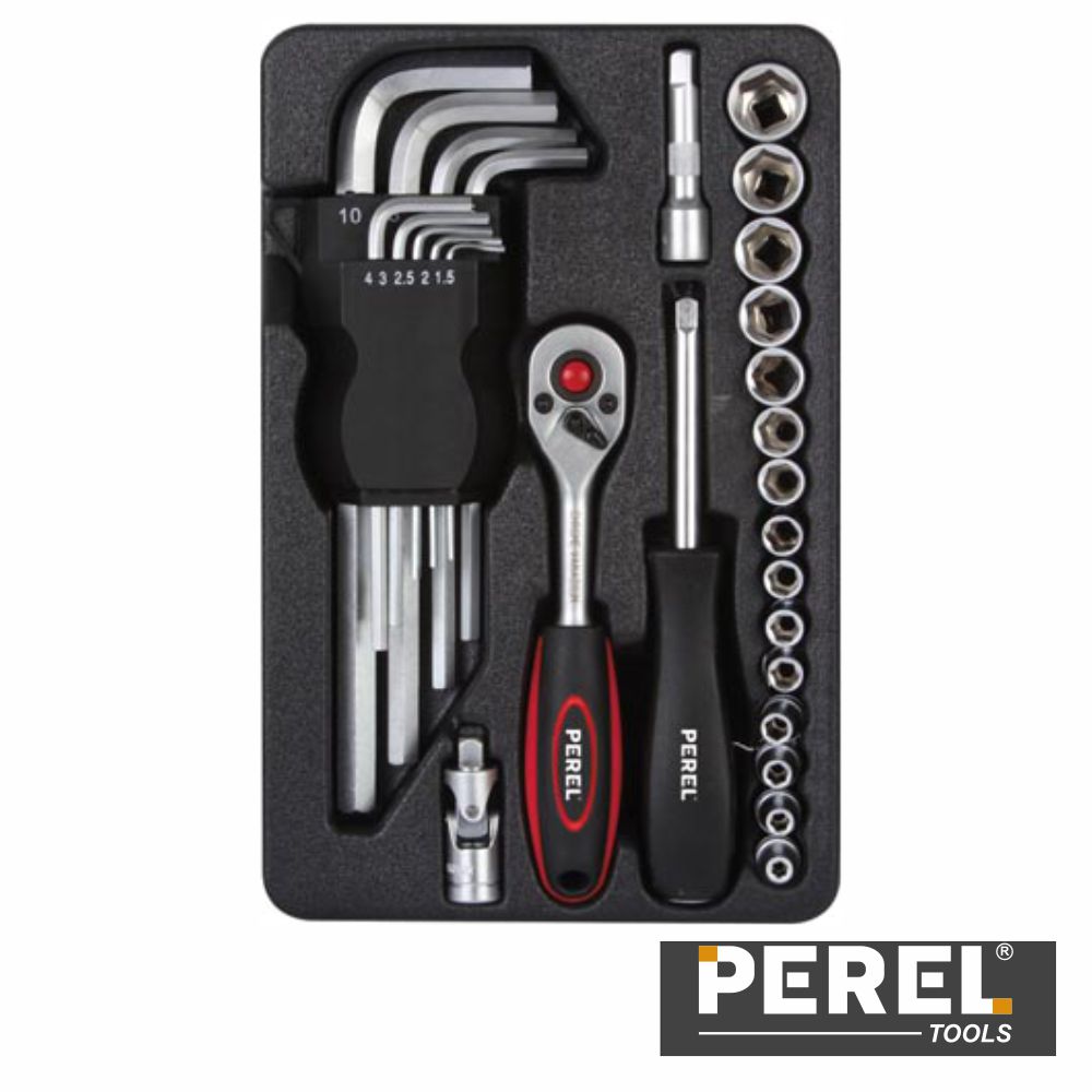 Home ROQUETES CONJUNTO FERRAMENTAS PROFISSIONAL 28 PEÇAS PEREL CONJUNTO FERRAMENTAS PROFISSIONAL 28 PEÇAS PEREL SKU: HSET13 29,90 € Desconto de %. IVA incluído. O produto encontra-se sem stock. Adicionar à wishlist - Conjunto de ferramentas c/ 28 peças - 9 Chaves hexagonais: 1.5, 2.0, 2.5, 3.0, 4.0, 5.0, 6.0, 8.0 e 10, chave de roquete 1/4" 72T - 15 Bits: 3.5, 4.0, 4.5, 5.0, 5.5, 6.0, 6.5, 7.0, 8.0, 9.0, 10, 11, 12, 13, 14, 1 extensor 2.5mm - Chave p/ Bits, inclui adaptador flexível Marca PEREL Tags FERRAMENTAS ROQUETES CHAVES INGLESAS E LUNETA ROQU Características Partilhar