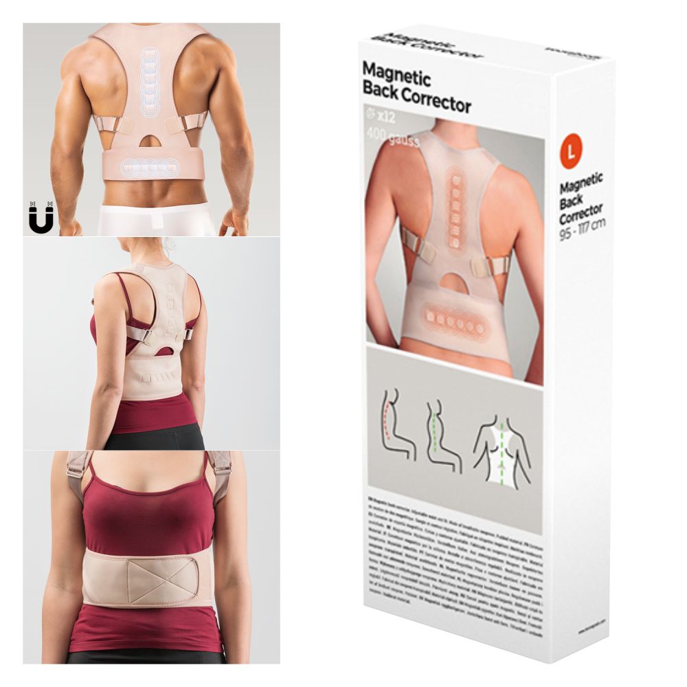- Solução eficiente p/ corrigir sua postura e ajuda a prevenir dores nas costas - Fecho de velcro na cintura: 95 até 110cm - Fabricado em tecido elástico, Design unissexo - Ajuda a relaxar os músculos - Magnetoterapia c/ 12 ímans