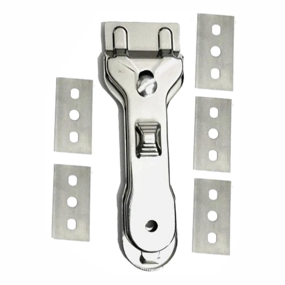 - Espátula para vidro com 5 lâminas - Lâmina retráctil para maior segurança - Remove resíduos de tinta ou autocolantes - Ideal para limpar placas de vitrocerâmica - Lâminas fáceis de substituir