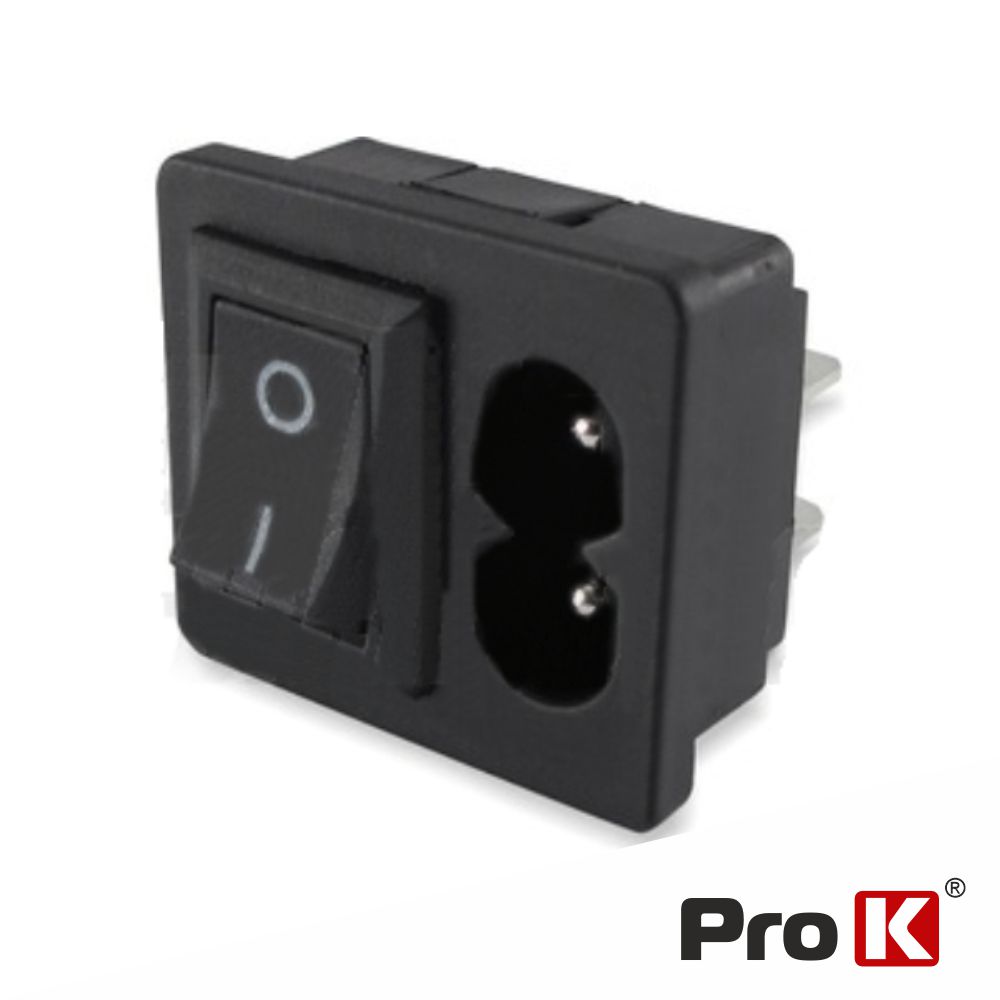 - Ficha de alimentação tipo-8 (C8) - Estrutura em termoplástico Preto - Ficha reforçada c/ fibra de vidro - Tensão máxima: 250V / 2.5A - Contactos em liga de cobre, c/ Interruptor - Conector de painel c/ faston 4.8mm