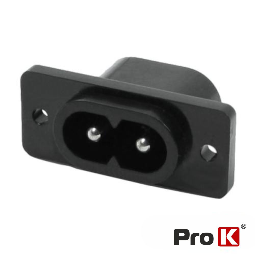 - Ficha de alimentação tipo-8 (C8) - Estrutura em termoplástico Preto - Ficha reforçada c/ fibra de vidro - Tensão máxima: 250V / 2.5A - Contactos em liga de cobre - Conector de painel