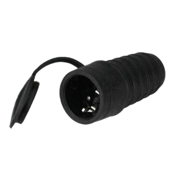 - Ficha de alimentação Schuko Fêmea - Intensidade máxima: 16A/250V - Base móvel à prova de Água - Estrutura em Borracha Preta - Diâmetro dos pinos: Ø4.8mm - Resistência: IP44