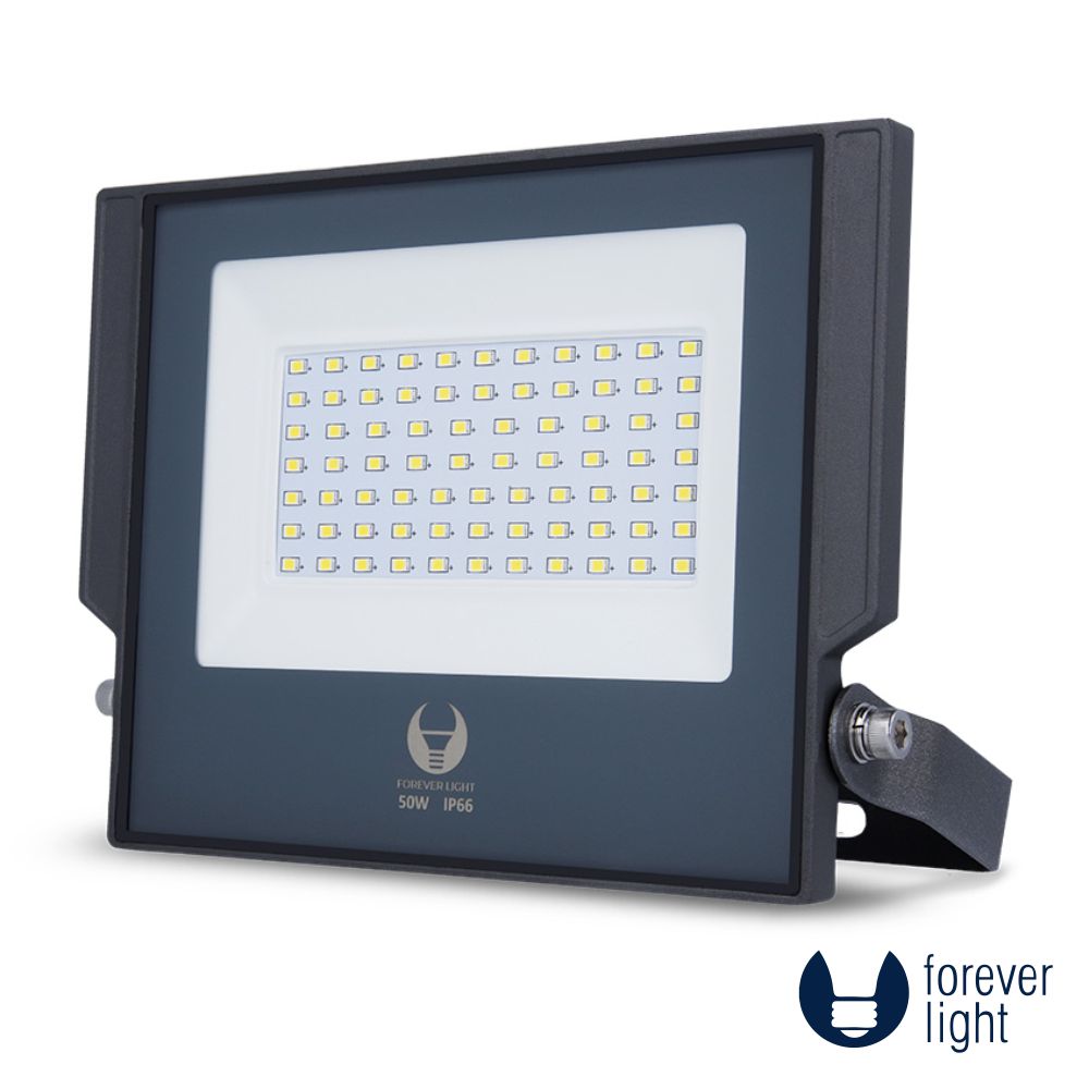 - Foco LED 50W - Tensão funcionamento: 230VAC - Tipo de LED: LEDS SMD, Classe energética: E - Intensidade luminosa: 5500 Lumens - Branco Frio 6000K, Ângulo de luz: 120º - Em Alumínio, Índice de proteção: IP66