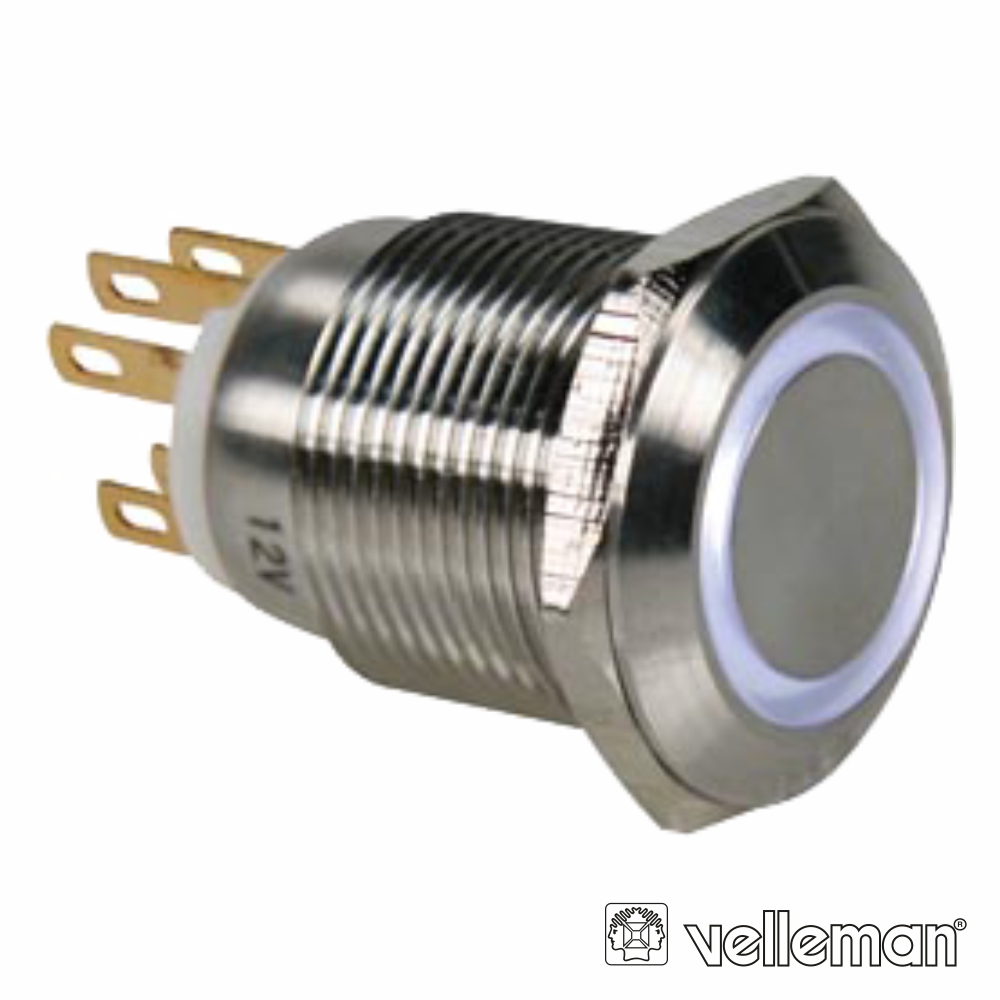 - Tipo: SPDT / 1NO1NC, iluminação LED Branco - Diâmetro (montagem): Ø19mm - Pressão: 5.5N, Resistência: IP65, 230Vac - Material de contacto: Liga de Prata - Resistência de contacto: 50Mohms - Resistência de isolamento: 1000Mohms