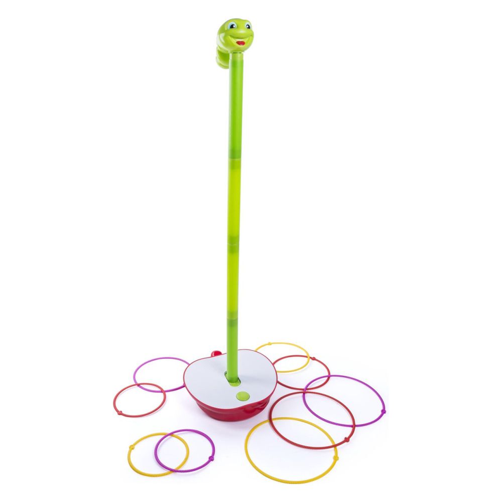- A serpente move-se sozinha - Objetivo: Acertar com as argolas na serpente - Jogo de pontaria - Adequado p/ crianças com +3 anos - Ideal de 1 a 4 jogadores - Alimentação: 2x AA (não incl.)
