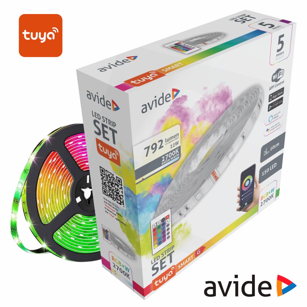 Home FITAS LED Kit Fita LED RGBW 12V 5m IP65 WIFI+ IR TUYA AVIDE Kit Fita LED RGBW 12V 5m IP65 WIFI+ IR TUYA AVIDE SKU: ABLS-30RGBW65-TYIR 30,80 € Desconto de %. IVA incluído. Comprar Contactar Adicionar à wishlist - Fita WIFI RGB+W (2700K) de 150 LEDs SMD 5050 - Dinâmica e flexível c/ fita adesiva, IP65, TUYA - Potência: 22w~4.4W/m, Tensão: 12V, APP gratuita - Ângulo luminoso: 120º, 30 LEDs p/metro - Intensidade luminosa: 792 Lumens - Compatível c/ Alexa e Google Home Marca AVIDE Tags ILUMINAÇÃO ILUMINAÇÃO LED FITAS LED Características Partilhar