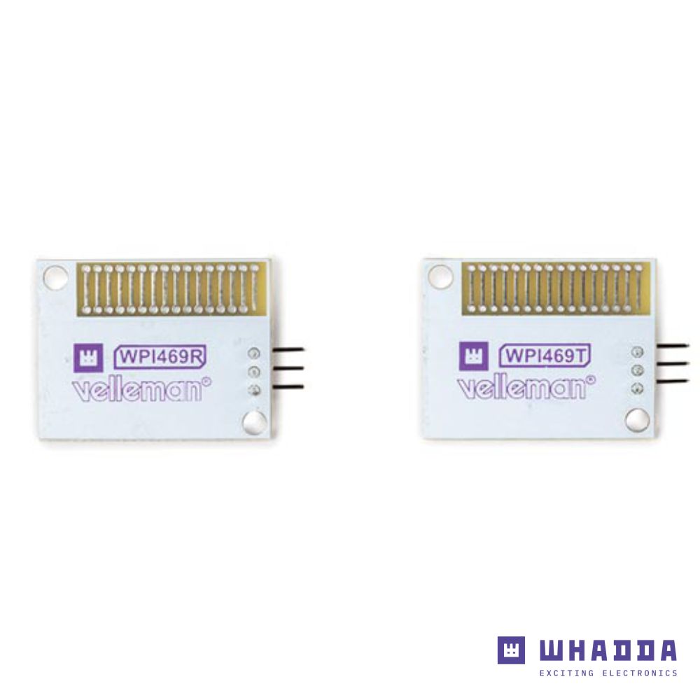 Home ACESSÓRIOS BICICLETAS Kit módulo Emissor + Receptor RF 433MHz WHADDA Kit módulo Emissor + Receptor RF 433MHz WHADDA SKU: WPI469 10,20 € Desconto de %. IVA incluído. O produto encontra-se sem stock. Adicionar à wishlist - Alcance (em linha de visão): 30 metros - Taxa de transferência: 4,8 kbps (máx.) - Modo: ASK/OOK - Antenas: integradas na PCB Marca WHADDA Tags KITS EDUCATIVOS WHADDA Características Partilhar