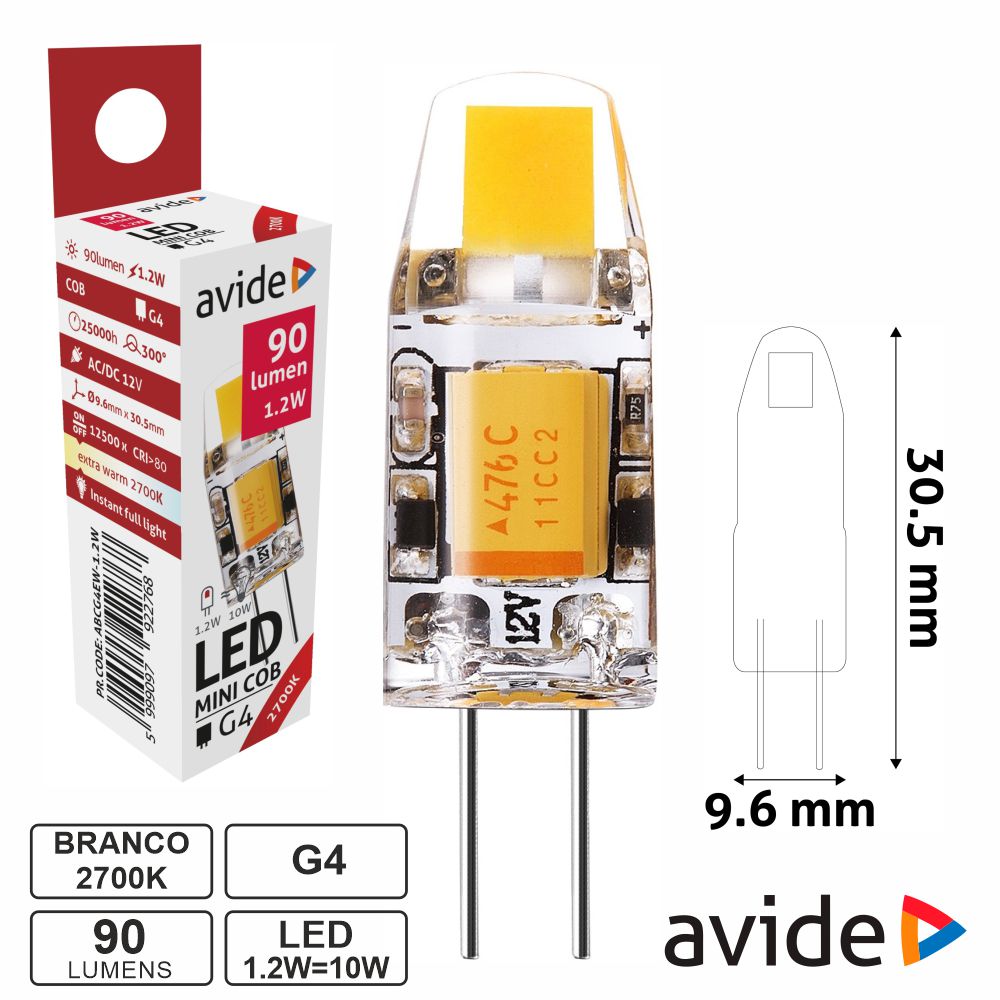 Home LÂMPADAS G4 Lâmpada LED G4 1.2W 12V 2700k 90lm AVIDE Lâmpada LED G4 1.2W 12V 2700k 90lm AVIDE SKU: ABCG4EW-1.2W 1,90 € Desconto de %. IVA incluído. O produto encontra-se sem stock. Adicionar à wishlist - Lâmpada G4 LED COB 12V - Tipo de Casquilho: G4 - Tensão funcionamento: 12V (10-14VAC/DC) - Potência: 1.2W=10W, Branco Quente - Temperatura cor: 2700K, 90 Lumens - Ângulo: 300º, tempo vida: 25000h, IP20 Marca AVIDE Tags ILUMINAÇÃO ILUMINAÇÃO LED LÂMPADAS G4 Características Partilhar