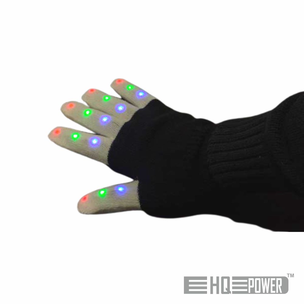 - Luvas adequado para festas - Luzes LED coloridas incorporadas - Material altamente elástico - Botão p/ alternar entre os vários modos de cor - Alimentação : 2x CR2032 (inc.)