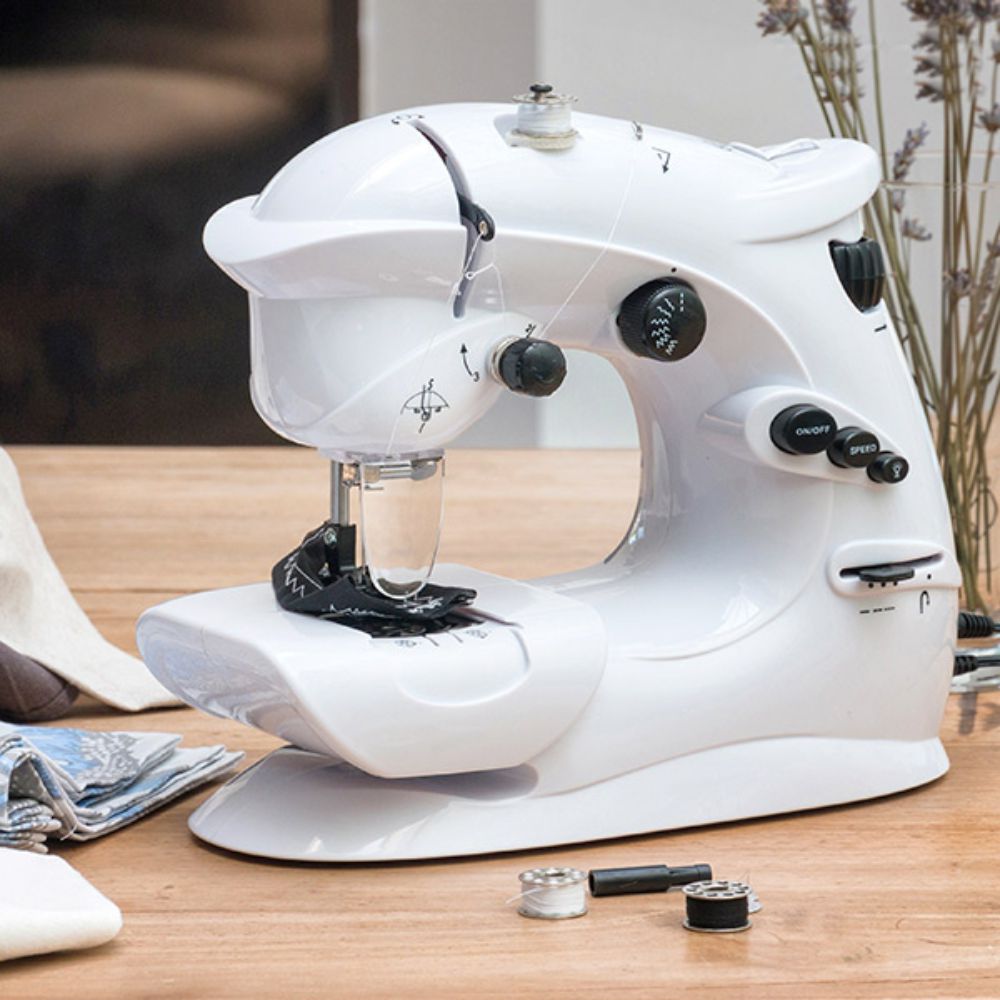 - Máquina de costura compacta - Sistema de ponto duplo - 2 Velocidades e LED. em ABS, 6V - 3 Comprimentos diferentes de ponto - 7 Padrões, costura p/ frente e p/ trás - Funciona c/ pilhas (4xAA, não incluídas)