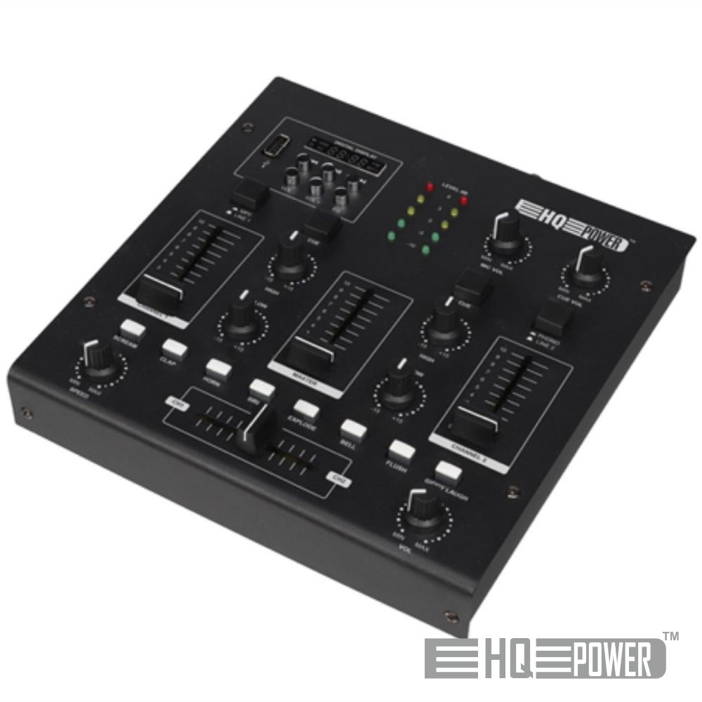 - Mesa de mistura c/ 2 Canais, USB e FX - 2 Entradas linha, saídas Stereo e RCA - EQ 2 Bandas por canal, Saída para auscultadores - Insert nos canais 1 e 2, freq.: 20-20.000Hz - Dimensões: 207x206x50mm