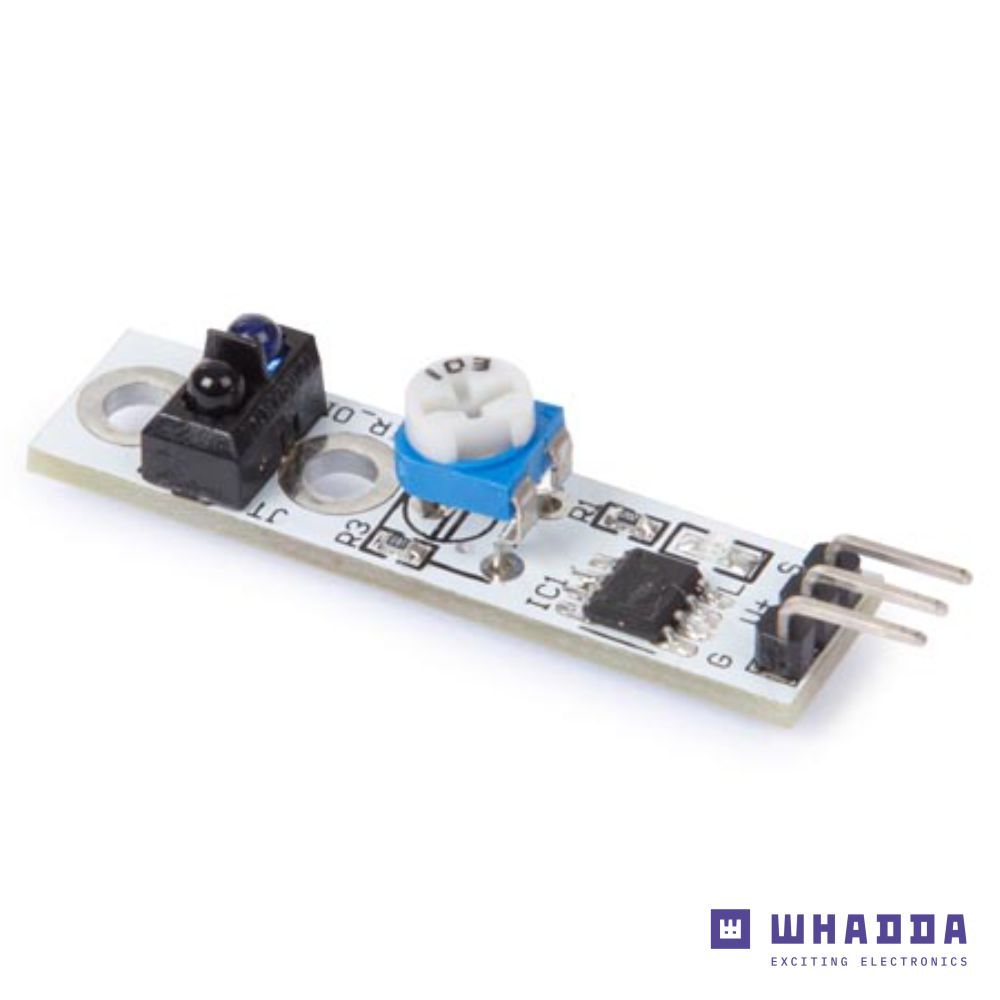 - O sensor adota TCRT5000, alta sensibilidade - Sensibilidade regulável através de potenciómetro - Potência de funcionamento: 3.3 V - 5 V - Tensão de trabalho: 20mA - Saída de comutação digital (0 e 1) - Tem 2 furos p/ parafusos fixos