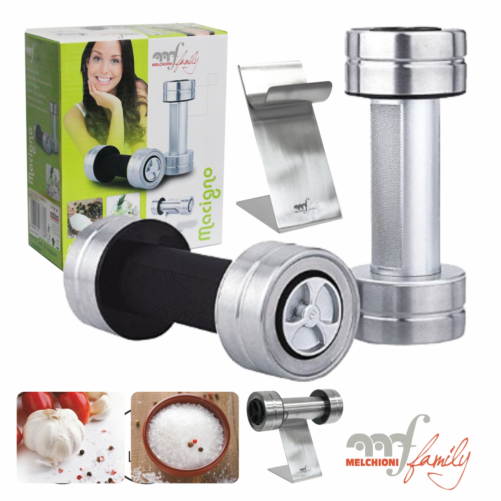 - Dispensador de Sal e Pimenta manual - Estrutura metálica robusta, design elegante - Compartimentos individuais - A medida do grão pode ser ajustada - Base de suporte metálica