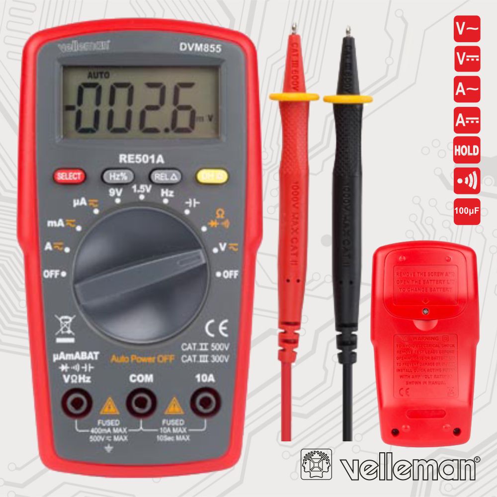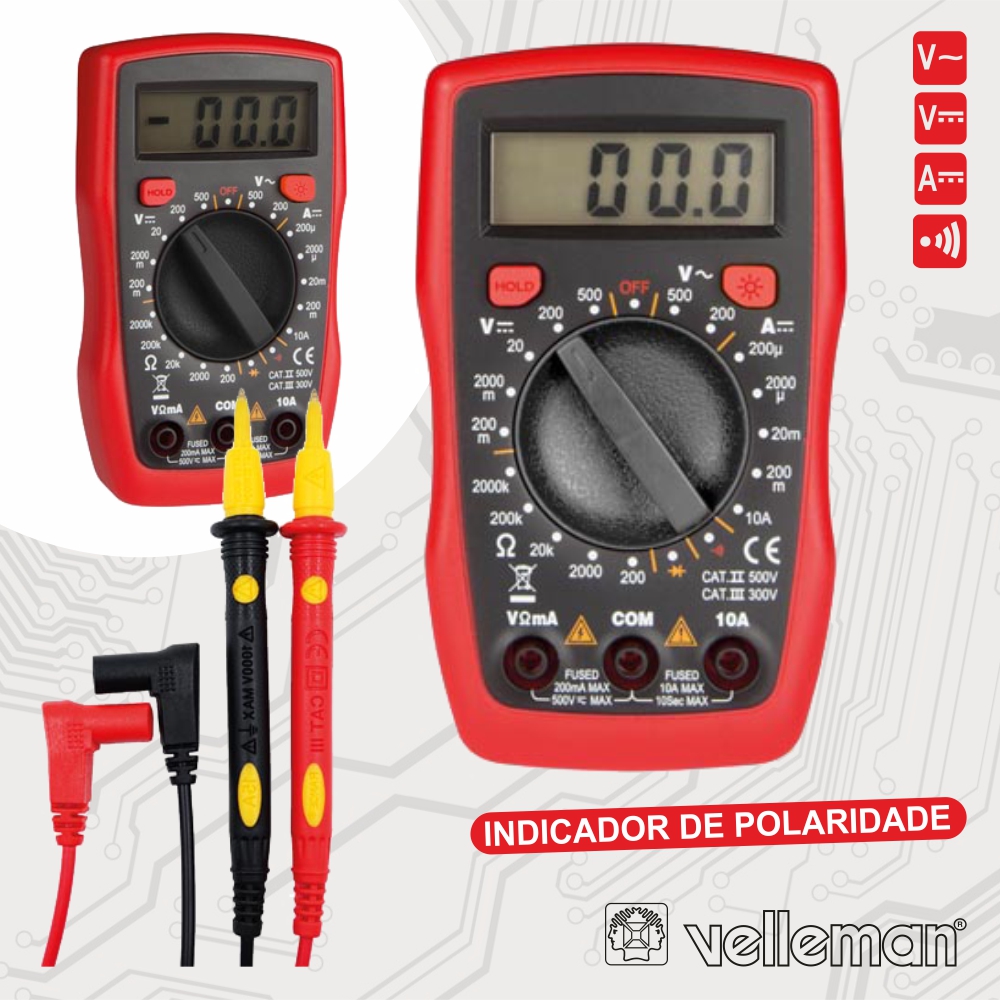 Home MULTÍMETROS DIGITAIS MULTÍMETRO DIGITAL 3½ DÍGITOS CATII500VCATIII300V VELLEMAN MULTÍMETRO DIGITAL 3½ DÍGITOS CATII500VCATIII300V VELLEMAN SKU: DVM856 10,70 € Desconto de %. IVA incluído. Comprar Contactar Adicionar à wishlist - Multímetro digital c/ visor 3 ½ dígitos 1999 - Amplitude tensão teste: 90-1000VAC rms - Tensão AC/DC: 500V, corrente DC: 200mA - Medição resistência, díodo e contínua aud. - Alimentação: 2x Pilhas AAA (não inc.) Marca VELLEMAN Tags FERRAMENTAS INSTRUMENTAÇÃO MULTÍMETROS DIGITAIS Características Partilhar