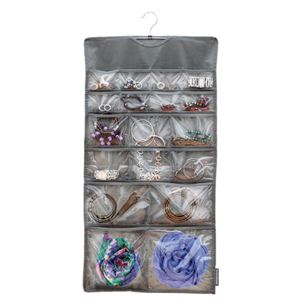 - Organizador de jóias e acessórios - Com gancho para suspensão - Design inovador e funcional - Fabricado em poliéster - 36 compartimentos em PVC transparente