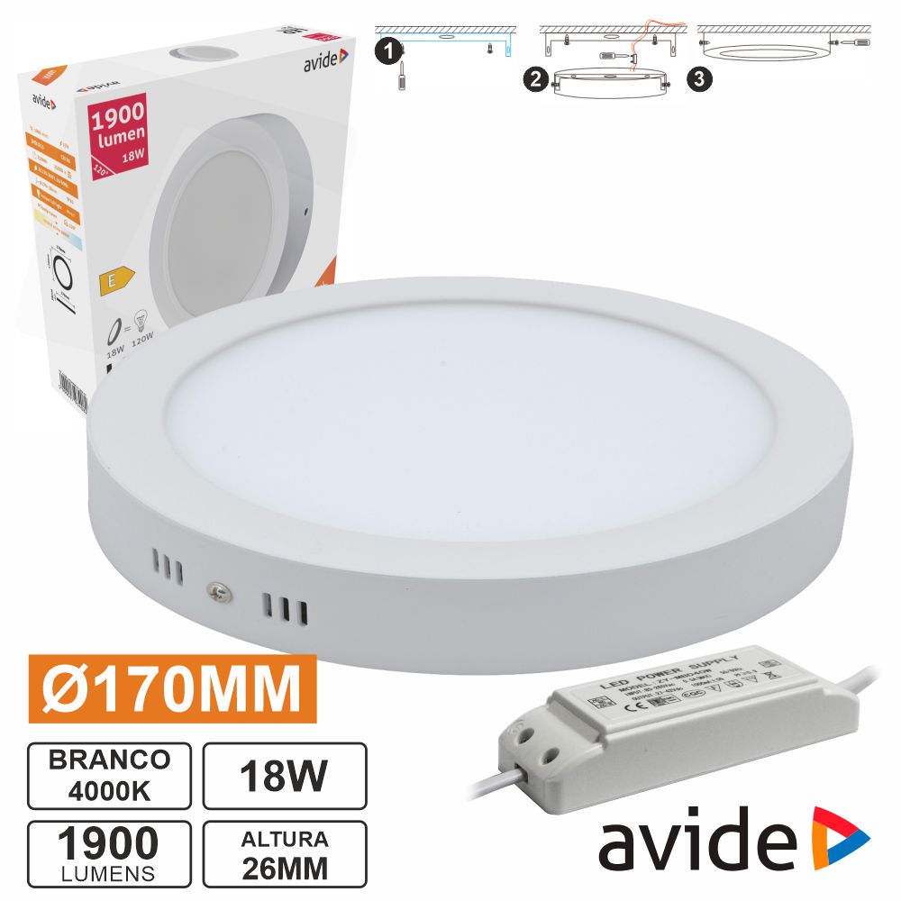 Home DOWNLIGHTS Painel LEDS Redondo Superfície 18W 170mm 4000K 1900lm AVIDE Painel LEDS Redondo Superfície 18W 170mm 4000K 1900lm AVIDE SKU: ACSMNW-R-18W-PC 7,80 € Desconto de %. IVA incluído. O produto encontra-se sem stock. Adicionar à wishlist - Lâmpada redonda de superfície IP20 - Tensão funcionamento: 230VAC - Potência: 18W, Branco Natural 4000K - Diâmetro: Ø170mm, Altura: 26mm - Estrutura em Plástico c/ lente opaca - Intensidade luminosa: 1900 Lumens Marca AVIDE Tags ILUMINAÇÃO ILUMINAÇÃO LED DOWNLIGHTS Características Partilhar