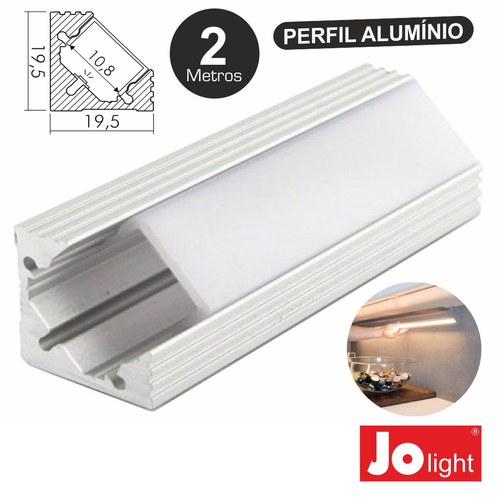 PERFIL DE ALUMÍNIO P FITA LEDS 2M DE CANTO JOLIGHT