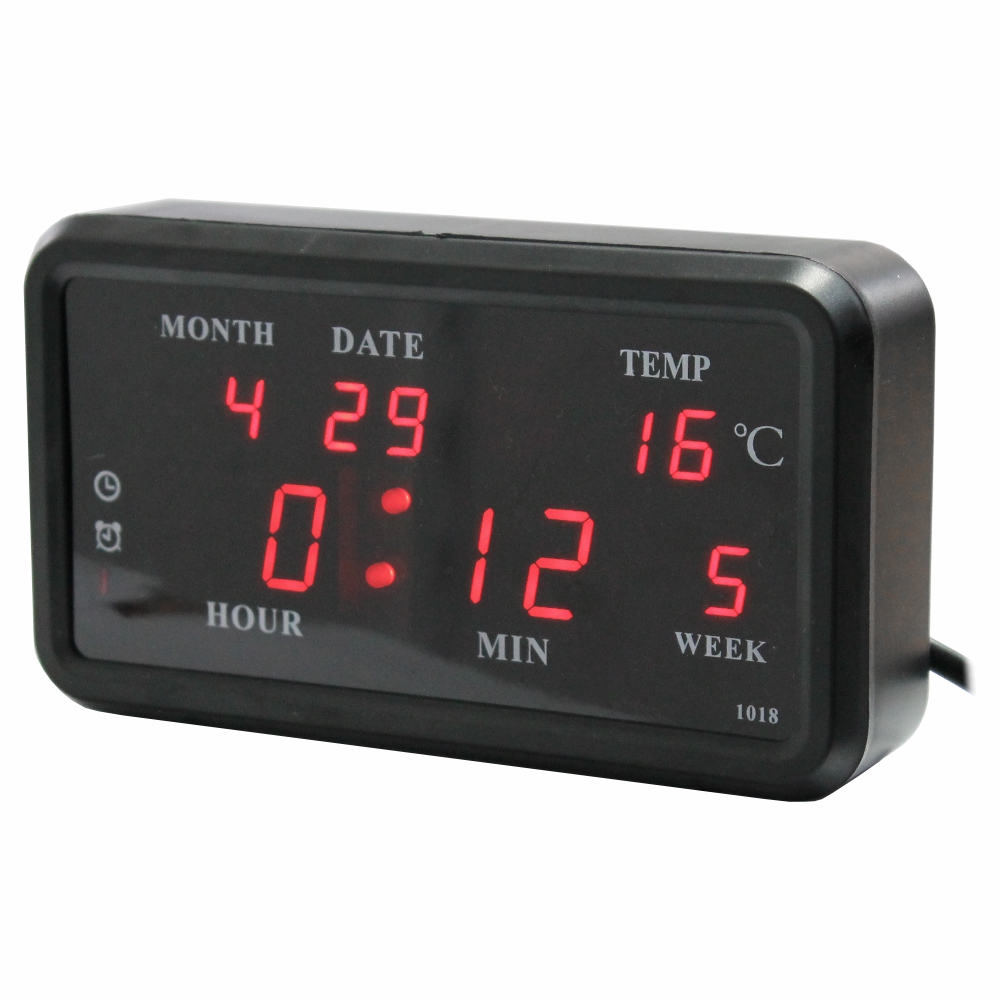 - Relógio c/ termómetro (ºC) e alarme - Hora, Ano, Mês, Dia e temperatura - Visor LED c/ digitos de grandes dimensões - Tensão funcionamento: 230Vac - Relógio c/ alarme, estrutura ABS