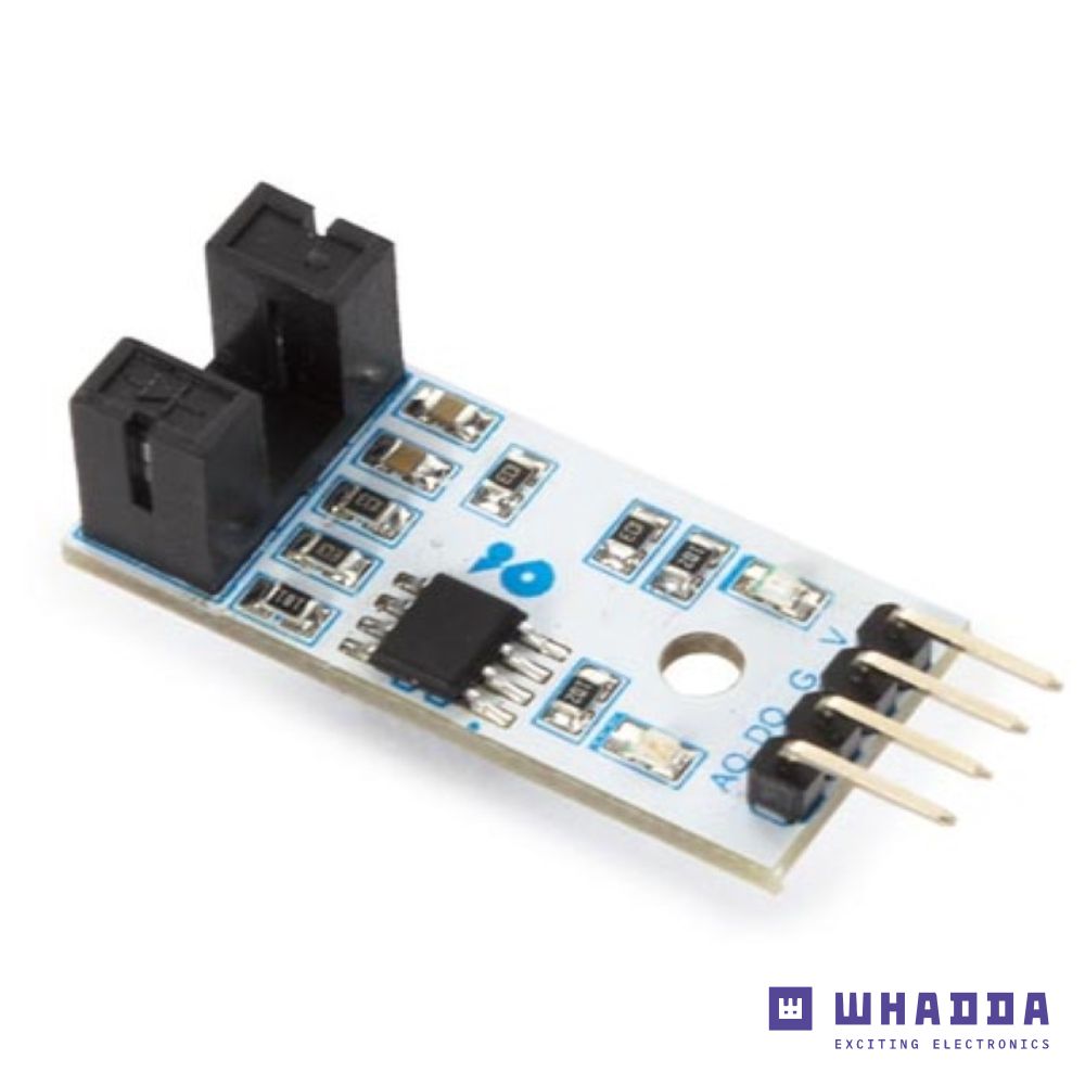- Compatível com Arduino - Tensão de funcionamento: 3.3 a 5 VDC - Duas saídas: uma digital, uma analógica - LED indicador de potência - Indicador LED para os impulsos de saída em D0 - Largura da ranhura de 5mm