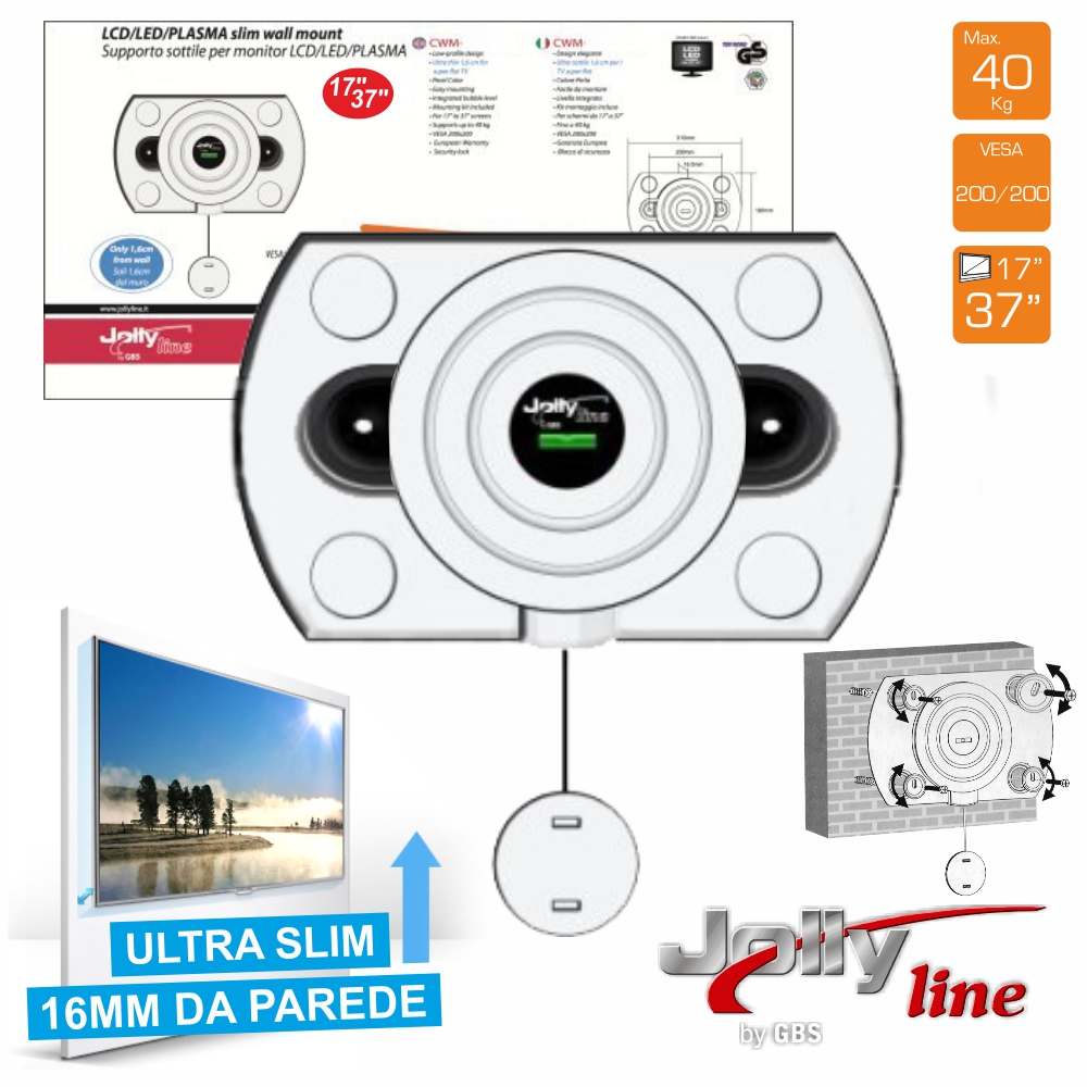 SUPORTE LCDPLASMA 1737" ULTRA-SLIM 200X200 40KG JOLLY