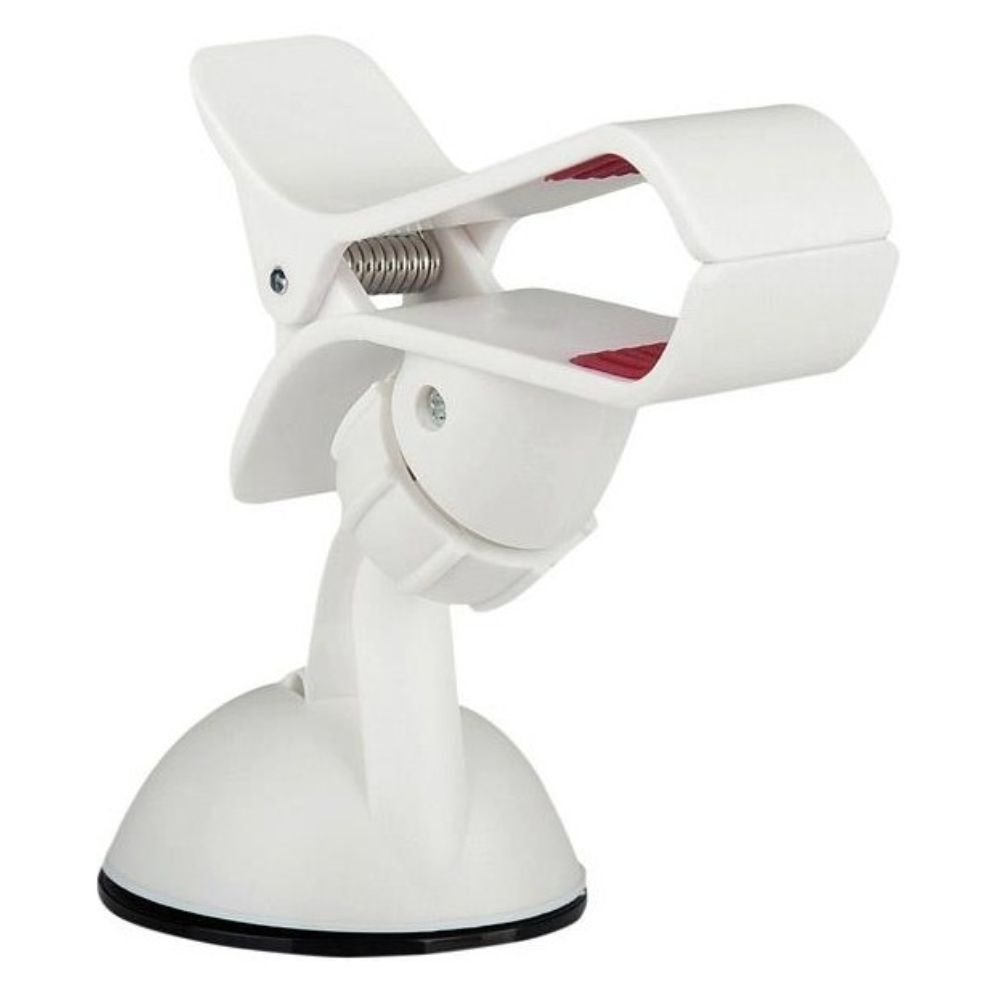 - Suporte universal p/ telemóvel e GPS - Ventosa de alta aderência p/ fixar no vidro - Braço regulável c/ rotação e inclinação - Suporte c/ rotação total 360º - Abertura da mandíbula: 39-110mm - Estrutura resistente em Plástico