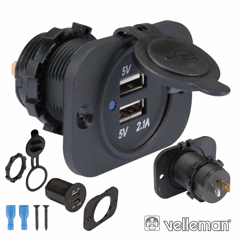 TOMADA USB DUPLA DE EMBUTIR 12-24VDC P 5VDC VELLEMAN