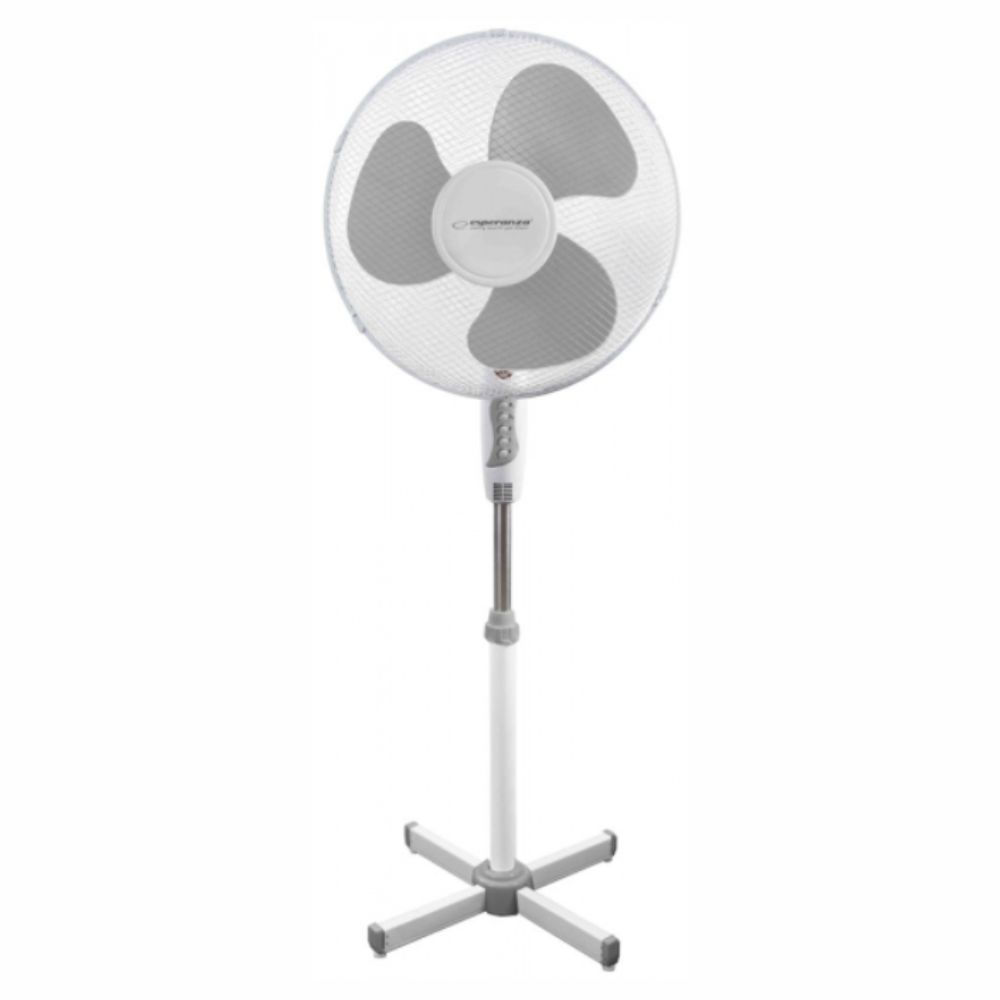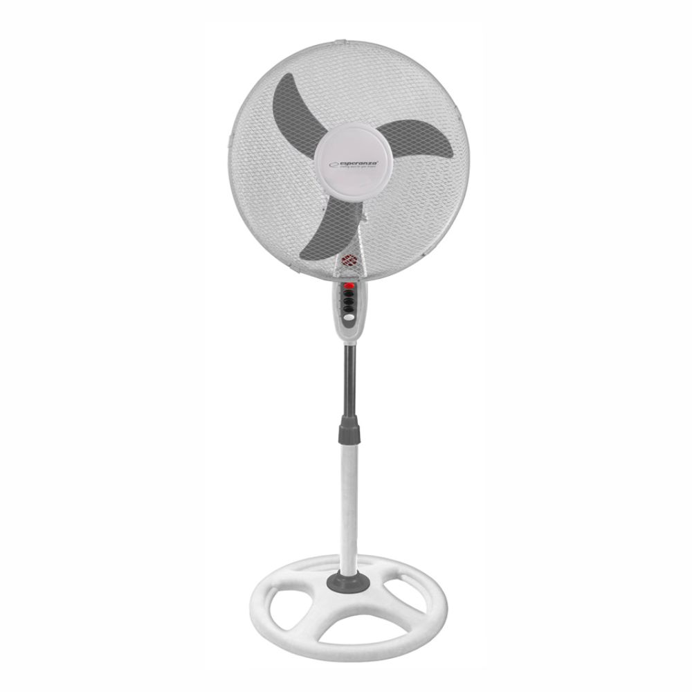 - Ventoinha de Pé 50W - 3 Velocidades selecionáveis - Base estável e pés antiderrapantes - Pás c/ diâmetro de Ø40cm - Proteção contra sobreaquecimento - Alimentação: 220-240V, Cor: Branco e cinzento